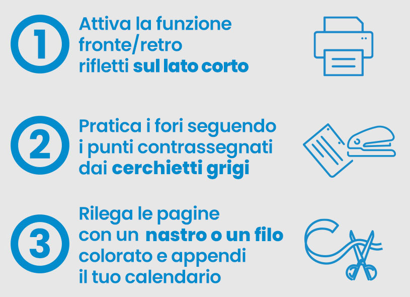 Scarica, stampa fronte/retro, fora seguendo i segni circolari in grigio e rilega le pagine con un nastro. Sarà come un piccolo progetto creativo!